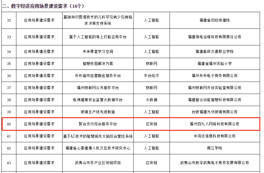 2020年10月12日,在第三屆數(shù)字中國建設(shè)峰會數(shù)字福建分論壇上,福州四九八科技憑借《聚合支付綜合服務(wù)平臺》成功入選“數(shù)字經(jīng)濟百項應(yīng)用場景”名單,成為“數(shù)字經(jīng)濟應(yīng)用場景建設(shè)需求”中的一員。