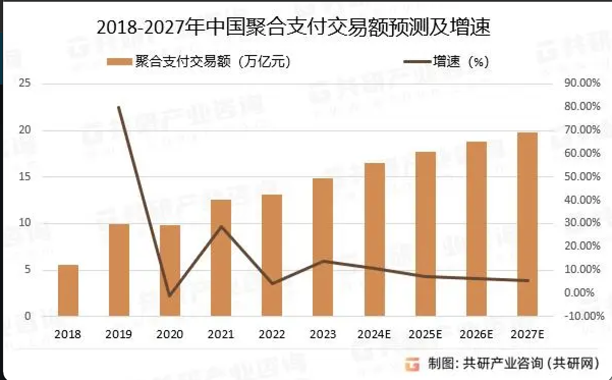 文章來源:四九八網(wǎng)絡(luò)發(fā)布時(shí)間:2024-06-21 09:37:36熱度:995數(shù)據(jù)顯示,聚合支付交易額在2027年預(yù)計(jì)達(dá)到20萬億元,2022至2027年年均復(fù)合增速將達(dá)到7.3%,其中中小微商戶聚合支付交易額占比由2018年約75%上升至2022年約85%。