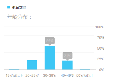 聚合支付需求年齡分布。聚合支付的推廣不僅僅需要地域的拓展,更需要劃分人群,才能做更精準定位,更精確的成本投入。而從2017年的數(shù)據(jù)看,聚合支付的需求年齡分布主體是30-39歲,占比達到56%,我們可以從主體觀念分析,此年齡正是創(chuàng)業(yè)的最好年齡層次,這個年齡群體幾乎都有著一顆創(chuàng)業(yè)的心,也積累了一定的創(chuàng)業(yè)資本。