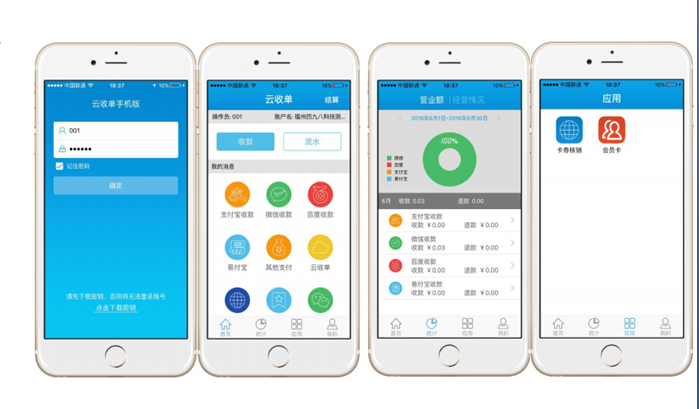 云收單是集成通道的收款軟件包含:微信、支付寶、百度錢包、京東錢包、QQ錢包、電信翼支付,并且收款軟件可以滿足市面上所有商戶的收款的需求。