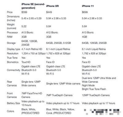 文章來源:四九八網(wǎng)絡(luò)發(fā)布時間:2020-04-26 09:45:48熱度:1501原標題:對比iPhone XR/11 iPhone SE的優(yōu)缺點在哪里