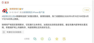 6月10日,國家互聯(lián)網(wǎng)信息辦公室指導(dǎo)北京市互聯(lián)網(wǎng)信息辦公室,約談新浪微博負(fù)責(zé)人,針對微博在蔣某輿論事件中干擾網(wǎng)上傳播秩序,以及傳播違法違規(guī)信息等問題,責(zé)令其立即整改,暫停更新微博熱搜榜一周,時間自6月10日15時至6月17日15時,暫停更新熱門話題榜一周,時間自6月10日15時至6月17日15時,嚴(yán)肅處理相關(guān)責(zé)任人,同時,要求北京市互聯(lián)網(wǎng)信息辦公室對新浪微博依法從嚴(yán)予以罰款的行政處罰。