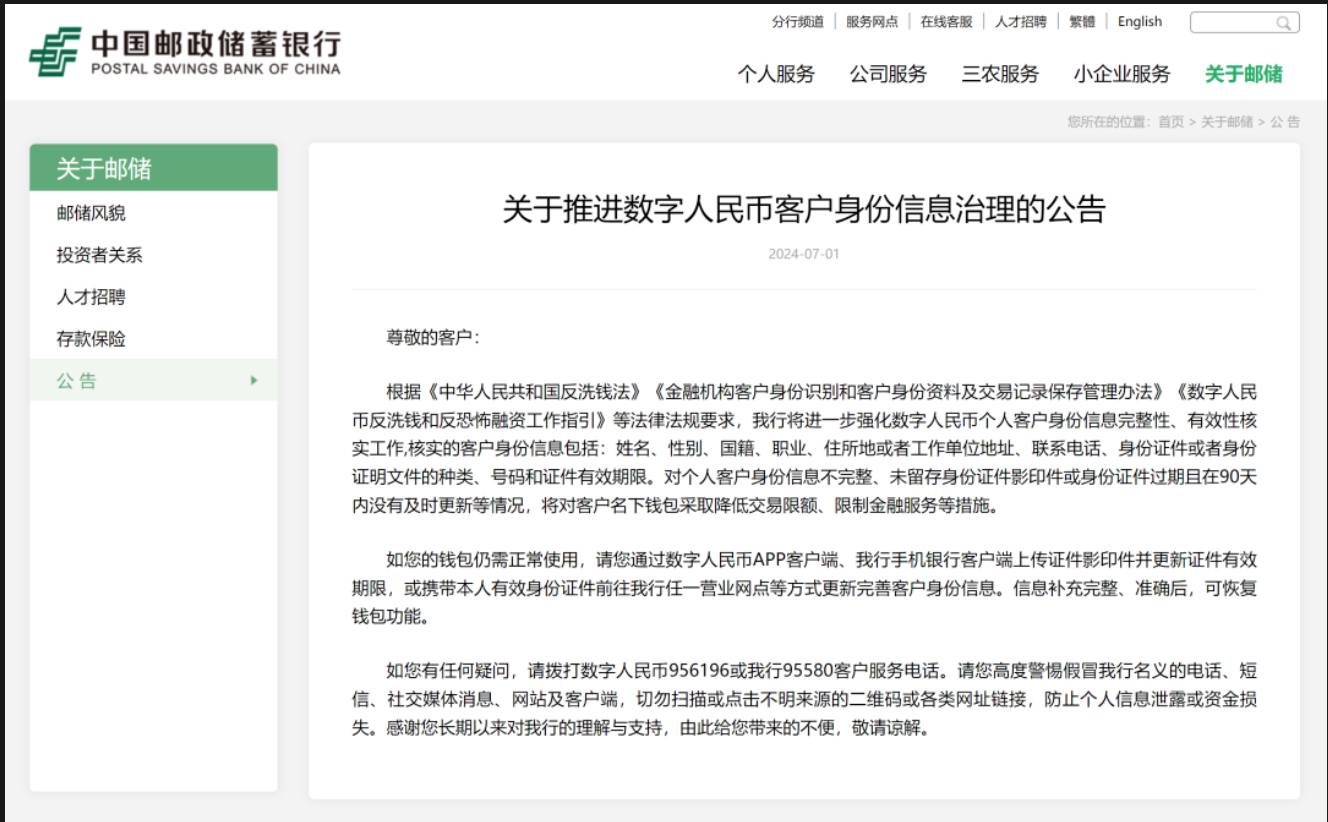 郵儲(chǔ)銀行率先強(qiáng)化數(shù)字人民幣個(gè)人客戶身份信息核實(shí)
