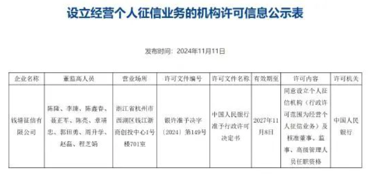 正式獲批!錢塘征信拿下“第三張個人征信牌照”