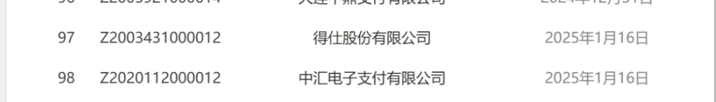 文章來(lái)源:四九八網(wǎng)絡(luò)發(fā)布時(shí)間:2025-01-21 09:31:56熱度:575據(jù)人民銀行官方消息,得仕股份有限公司、中匯電子支付有限公司兩家支付機(jī)構(gòu)各自所持有的支付牌照被正式注銷(xiāo)。