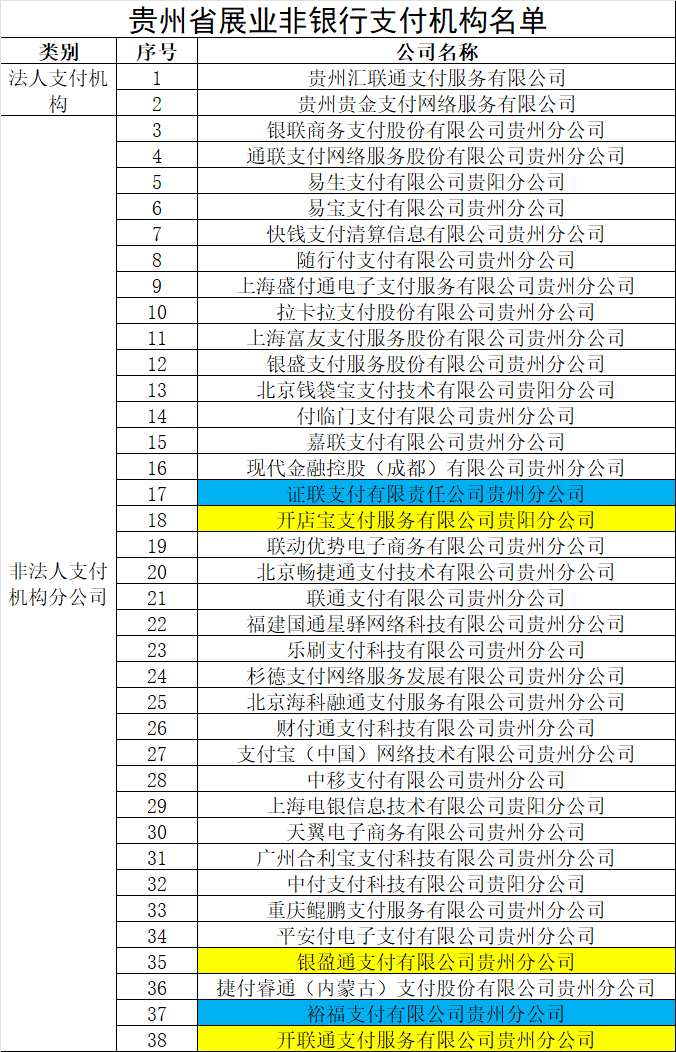 貴州人行公布省內(nèi)展業(yè)支付機(jī)構(gòu)名單