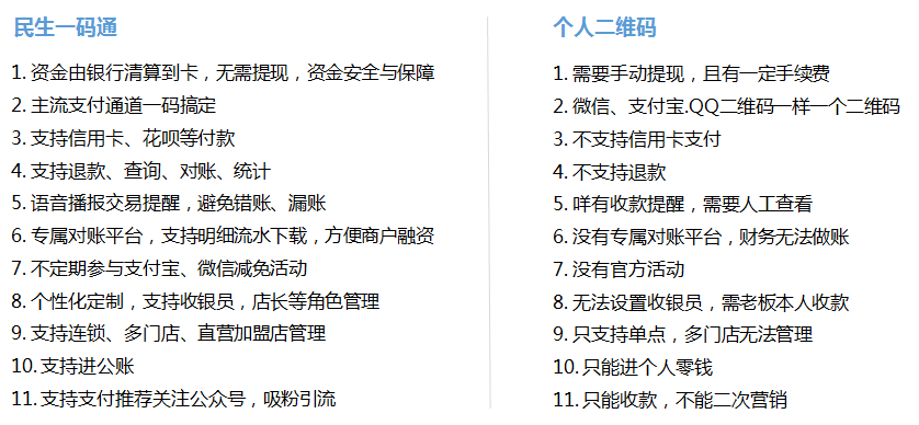 民生一碼通和個人二維碼對比的優(yōu)勢